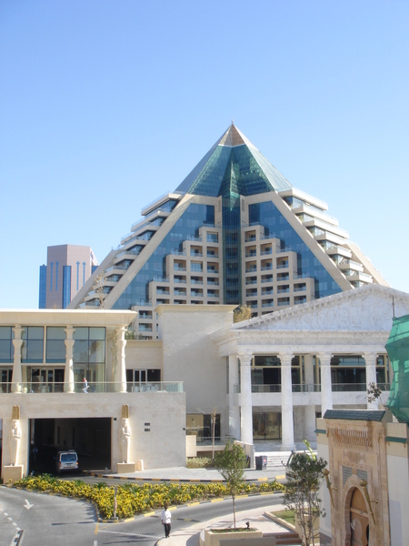 第一次到Wafi City逛時,只在Mall裡面逛,有在某個戶外平台看到隔壁有個金字塔造型的餐廳,但因為不知如何靠近,所以就只有遠遠的看了一下。