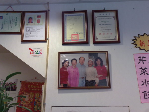 趁等菜上來的空檔,我在餐廳四處閒晃,發現牆上有老闆和胡自強夫婦的合照。